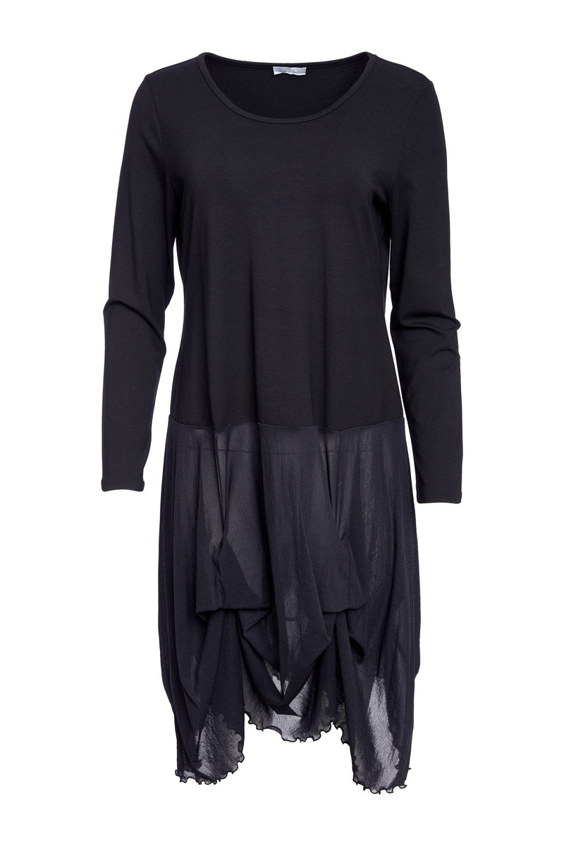 NAYA NAYA NAW25124 Round Neck Dress With Ruched Mesh Hem Panel