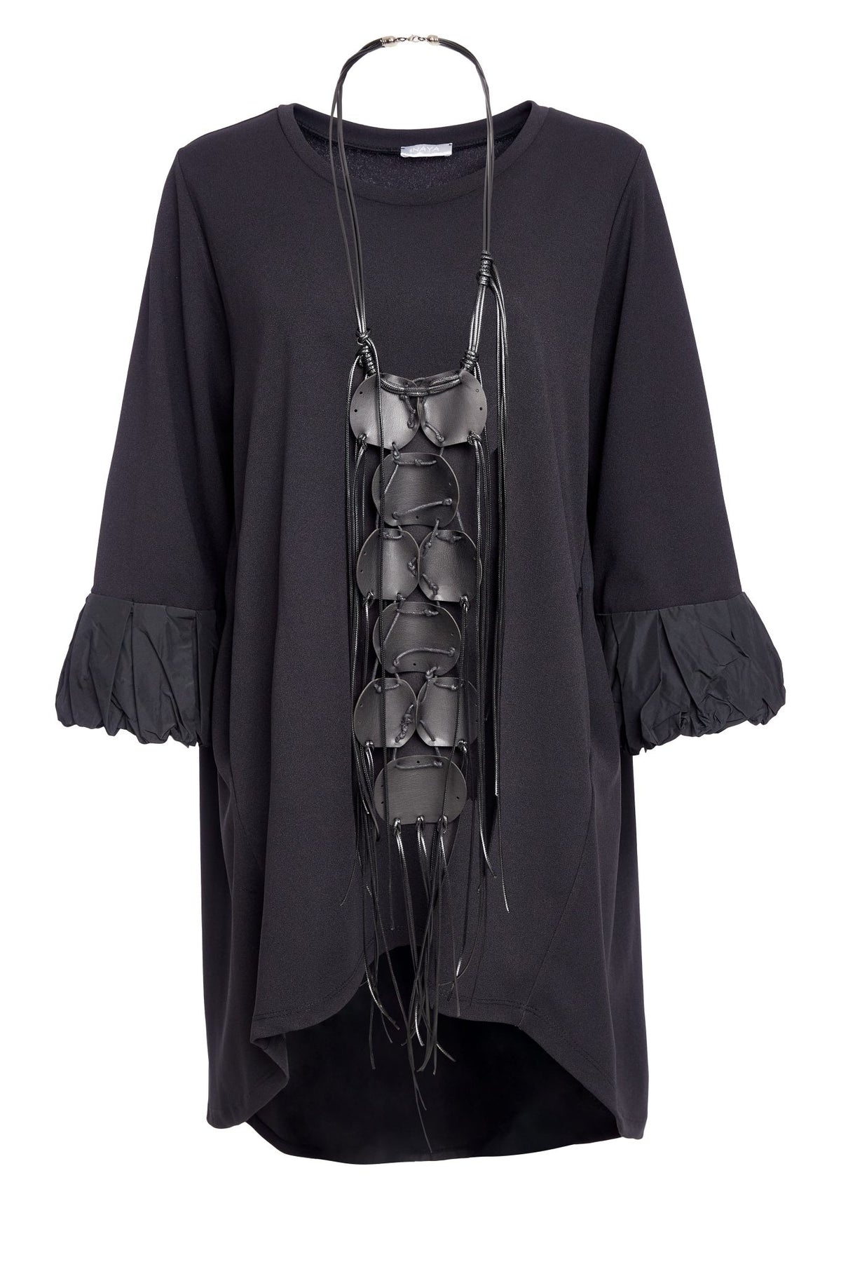 NAYA NAYA NAW25305 Curved Hemline Tunic Top With Contrast Ruched Cuff