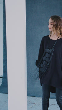 Curved Hemline Tunic Top With Contrast Ruched Cuff