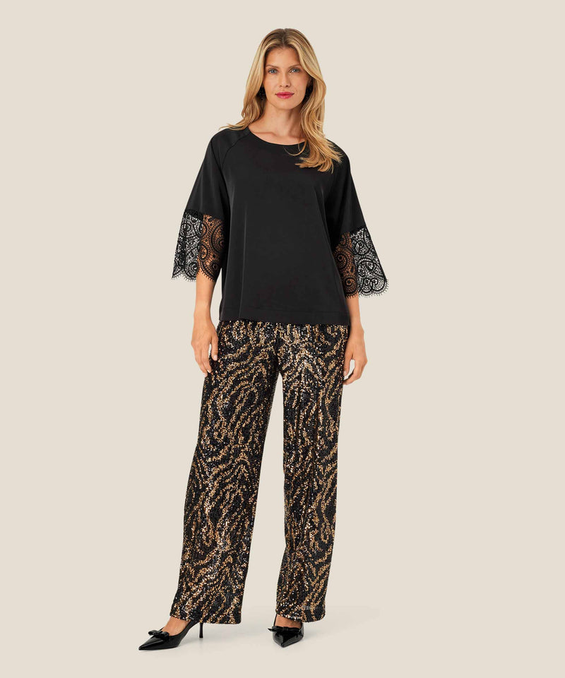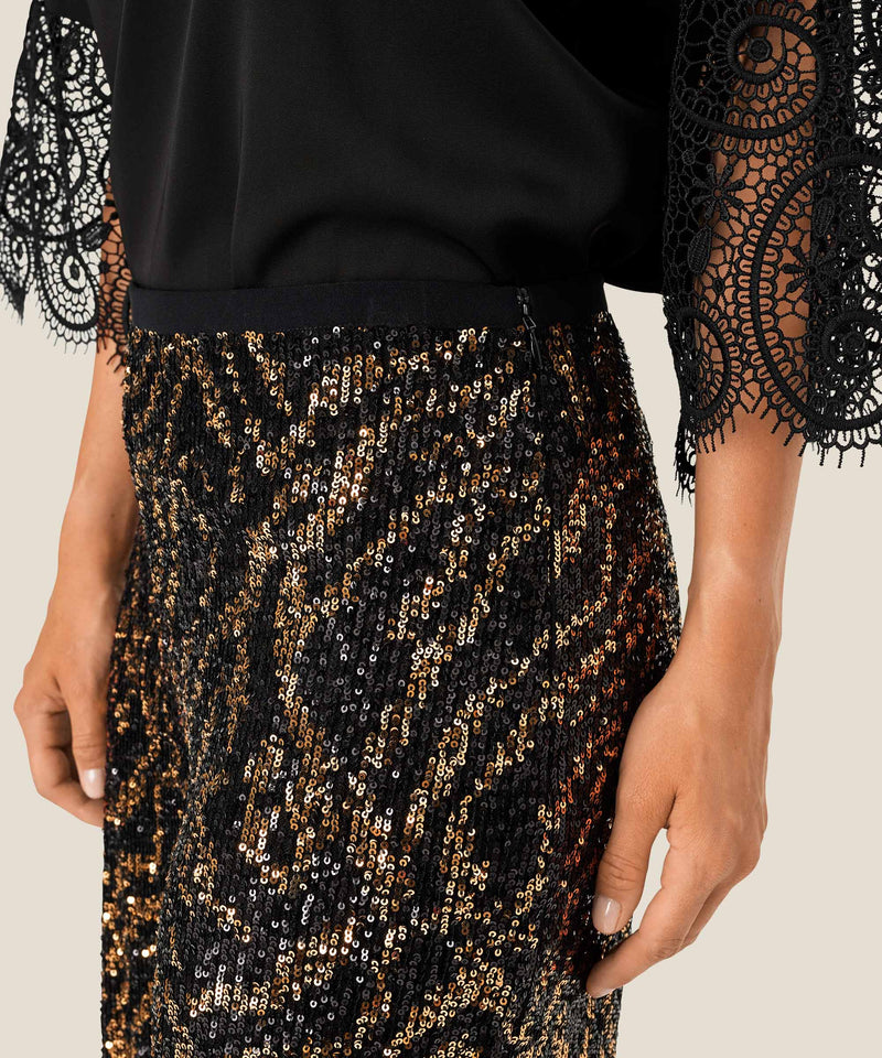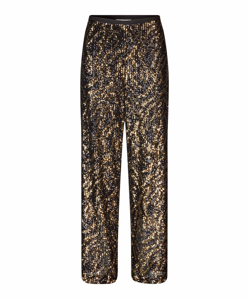 You can never have too much glitz and glamour in your wardrobe, and these sparkling sequin trousers are full of fun and colour. The trousers are designed in a body-hugging cut with an elasticated waist and side zip. And the best of all? They have a smooth and soft jersey lining so you don't have to compromise on comfort. Style the trousers with a feminine top or shirt, or go all out on the glittery look with our matching top.