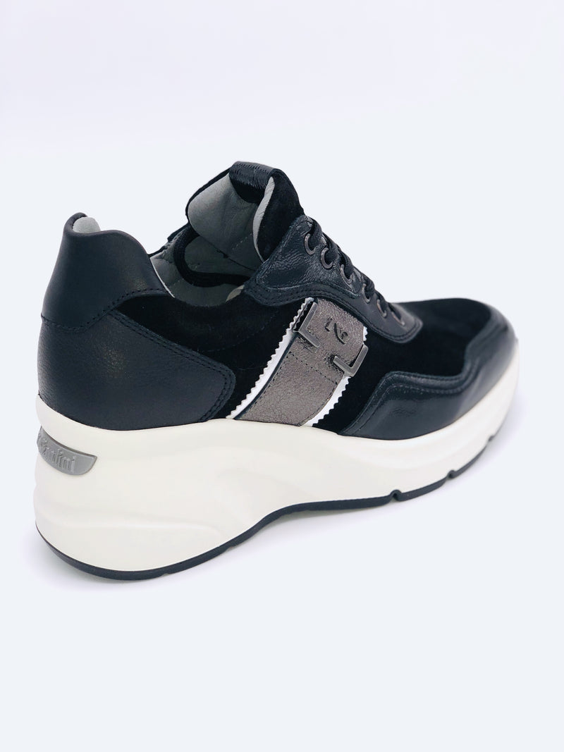 NeroGiardini sneakers, personality and unique style. NeroGiardini shoes are made in Italy, using quality materials and the most advanced manufacturing techniques. Each shoe is the result of expert craftsmanship passed down from generation to generation. All models are designed to offer comfort and versatility at any time of day, from work to a special evening. The NeroGiardini style department is constantly looking for new trends to offer footwear that is always current and original. NeroGiardini also offers a collection of bags, perfectly matching the shoes, for an impeccable total Made in Italy look. The insole with DryGo!® technology absorbs humidity and guarantees comfort and well-being. The Made in Italy production of NeroGiardini shoes is highlighted by the tricolor printed on the soles and on the packaging.
