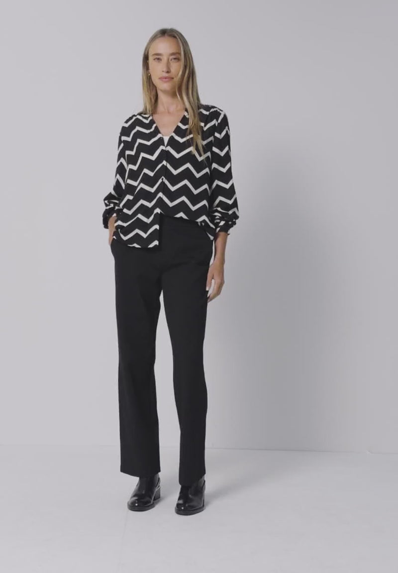 This women's tunic from Street One features a striking zigzag pattern and shimmering stud details. A split neck, button placket, and soft viscose fabric make it the perfect companion for stylish everyday outfits.