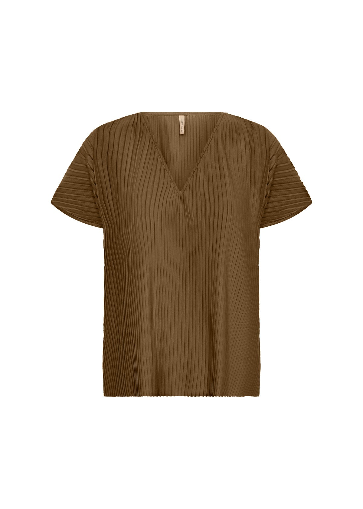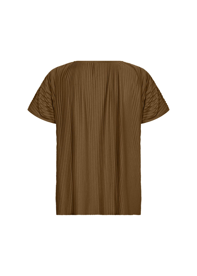 SC-KIRIT 21 is a T-shirt made from 65% Recycled Polyester and 35% LENZING™ ECOVERO™ Viscose. It features a V-neckline and short sleeves with a textured pleat design. Pair it with jeans for a relaxed look or with tailored trousers for a more refined outfit.