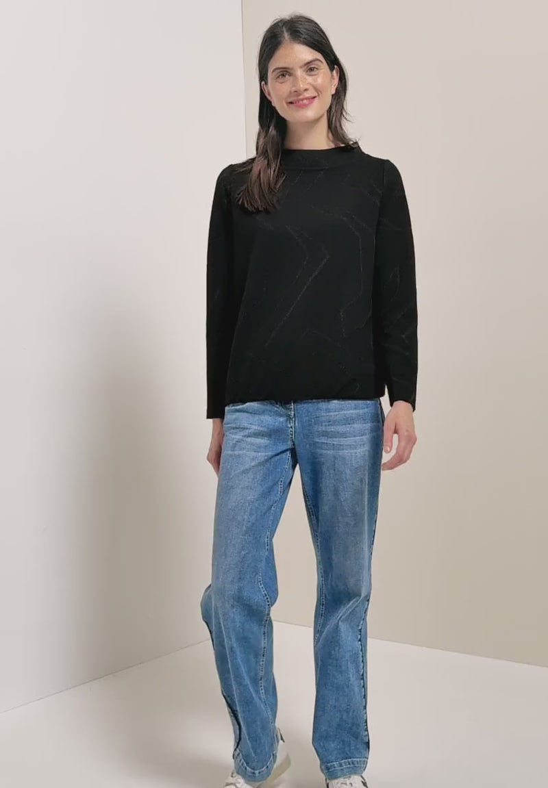 With its subtle glitter look, the Ottoman shirt from CECIL for women adds a stylish touch. The elastic hem, comfortable funnel neck, and long sleeves make it the perfect companion for feminine casual looks with a special twist.
