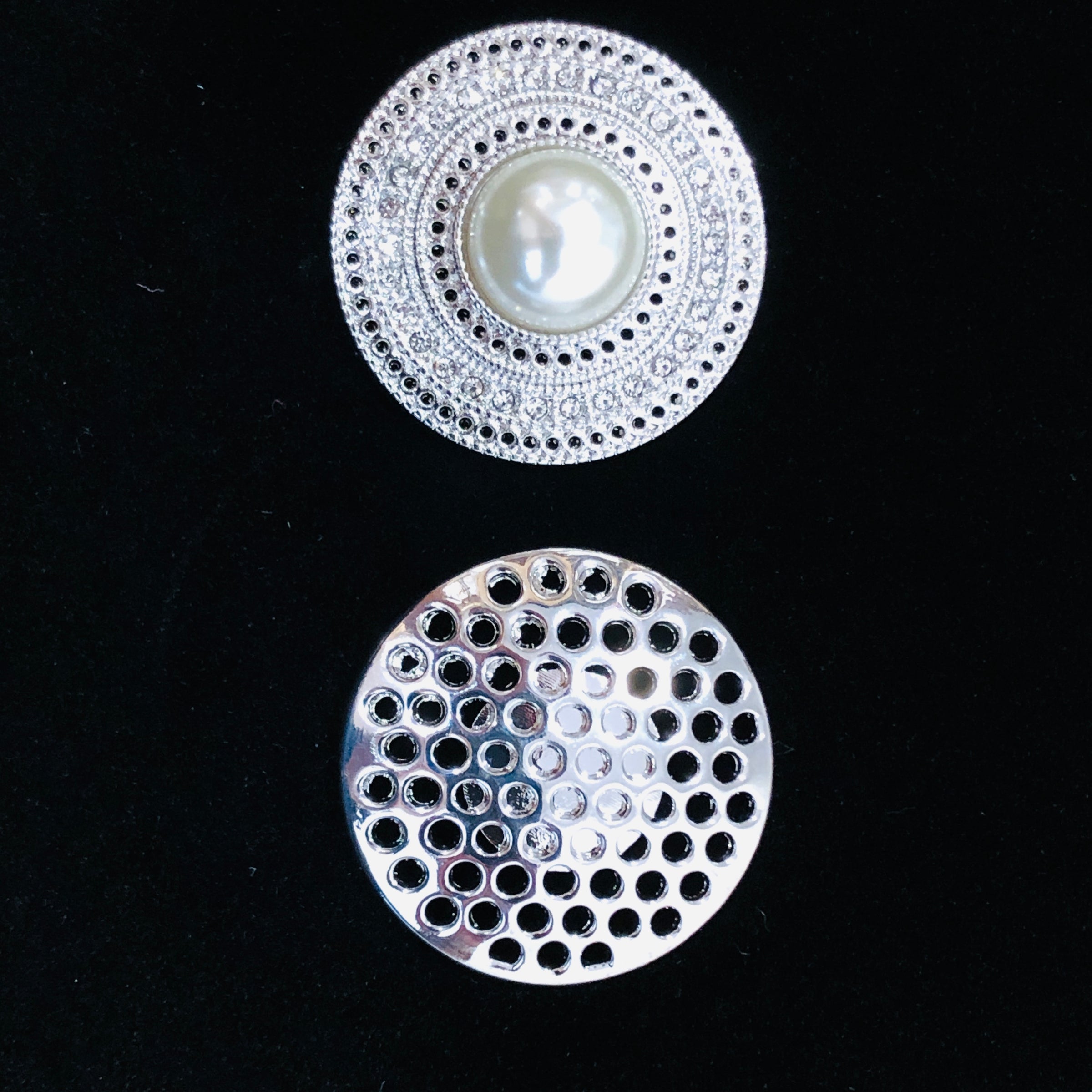 Pearl round, magnetic brooch, costume jewellery.