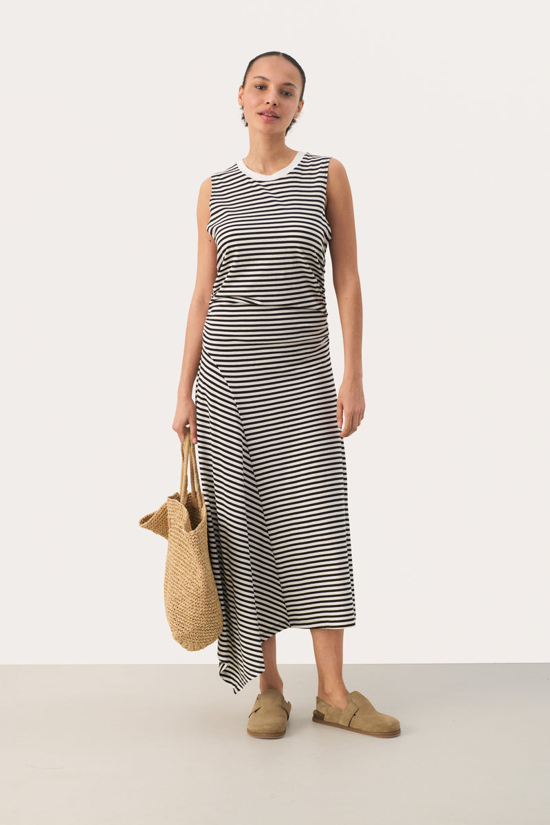 NAYA NAYA NAW25269 High neck stripped top with contrast sections and pocket