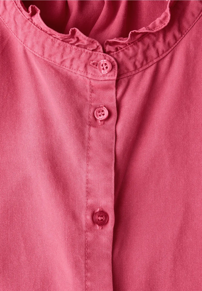 This women's tunic from Street One adds a fashionable touch with delicate ruffle details on the round neck and sleeves. The washed look gives the blouse a modern flair. The button placket completes the look, while the soft lyocell fabric ensures a high level of comfort.