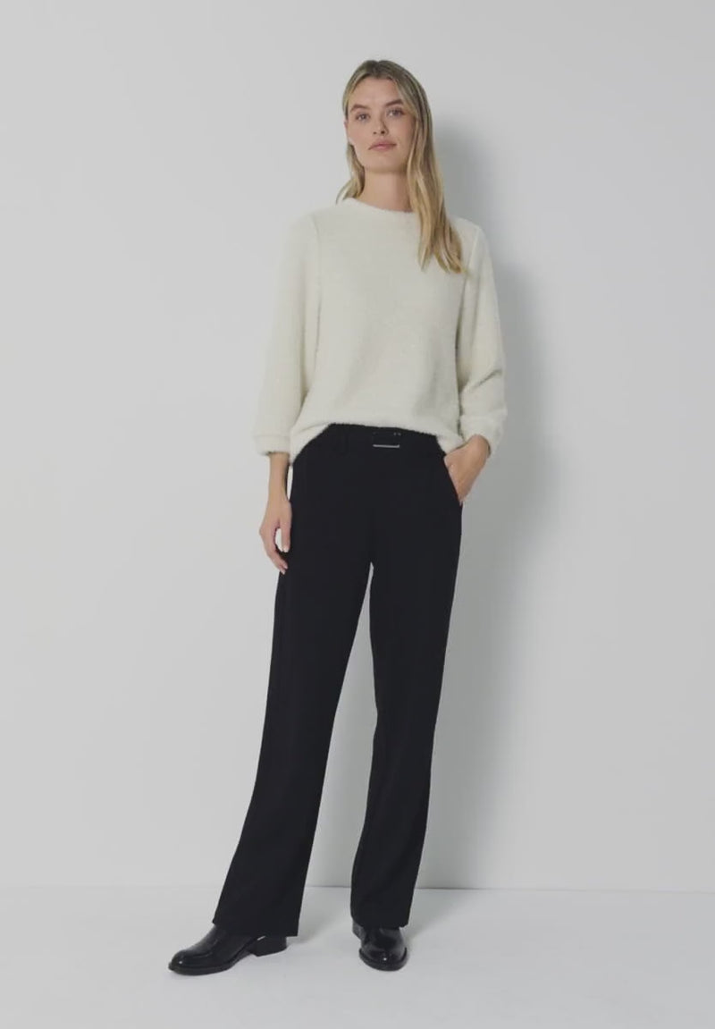 This long-sleeved shirt from Street One for women combines a fluffy feel with sparkling highlights and a modern zigzag texture. The round neckline and cuffs on the sleeves complete the feminine look. Perfect for stylish, comfortable outfits.